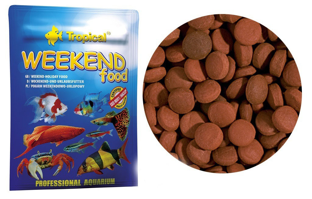 Weekendfoder der er velegnet til alm. akvariefisk. Foderet er sammensat så der er en minimal forurening af akvariet ved anvendelse. Weekendfoder må kun anvendes i velfungerende akvarier.