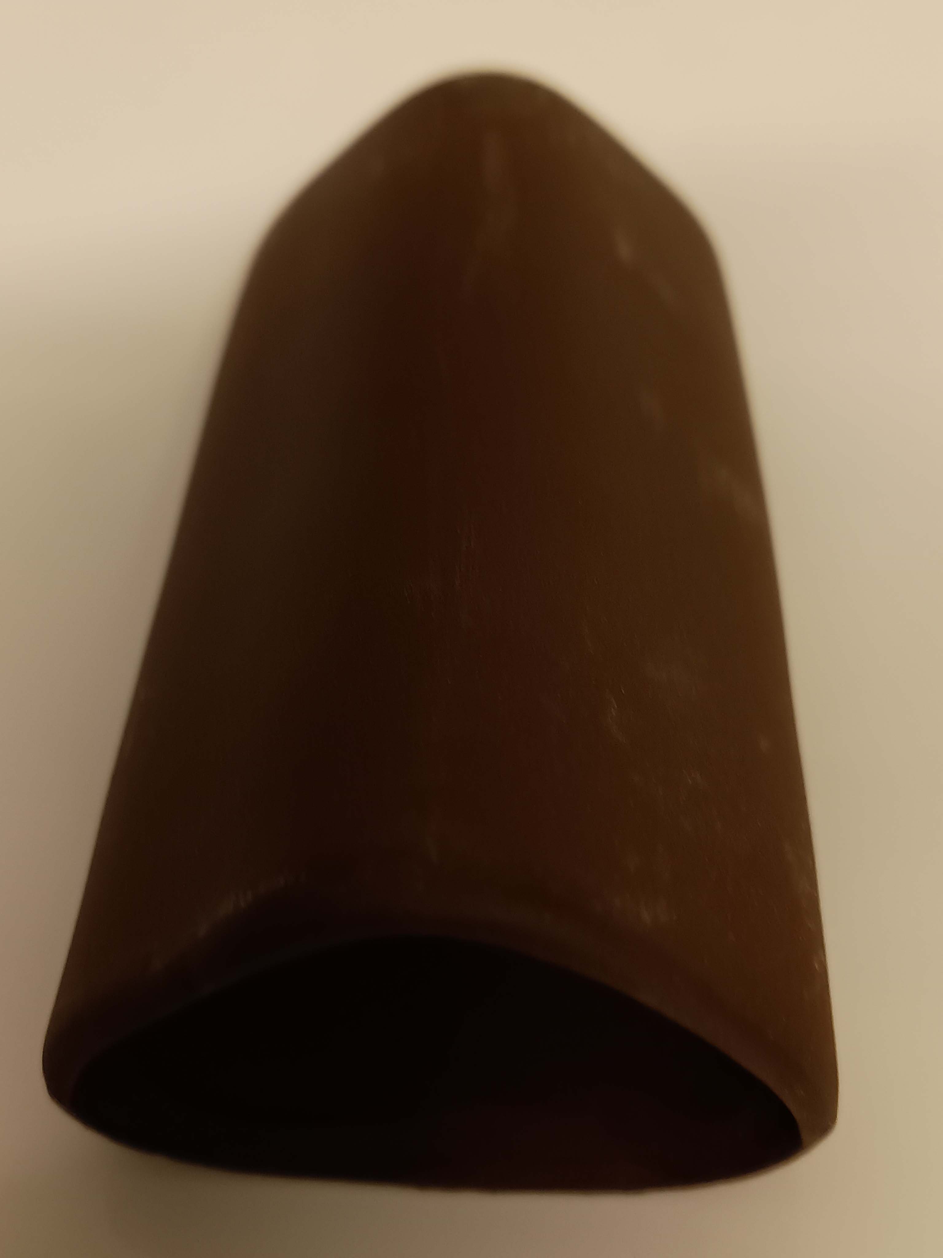Mallehule med trekantet indgang i brun keramik.