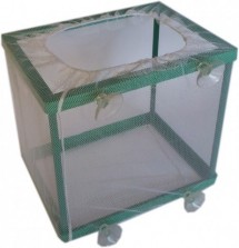 Fødekasse med plastikramme og net i polyester, leveres med sugekopper.