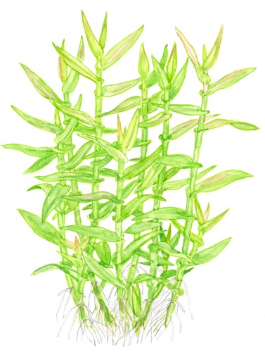 Ved tilførsel af CO2 og stærkt lys får stænglerne rødlige skudspidser. På grund af den meget hurtige vækst, må de længste skud kontinuerligt beskæres og nogle af toppene genindplantes.