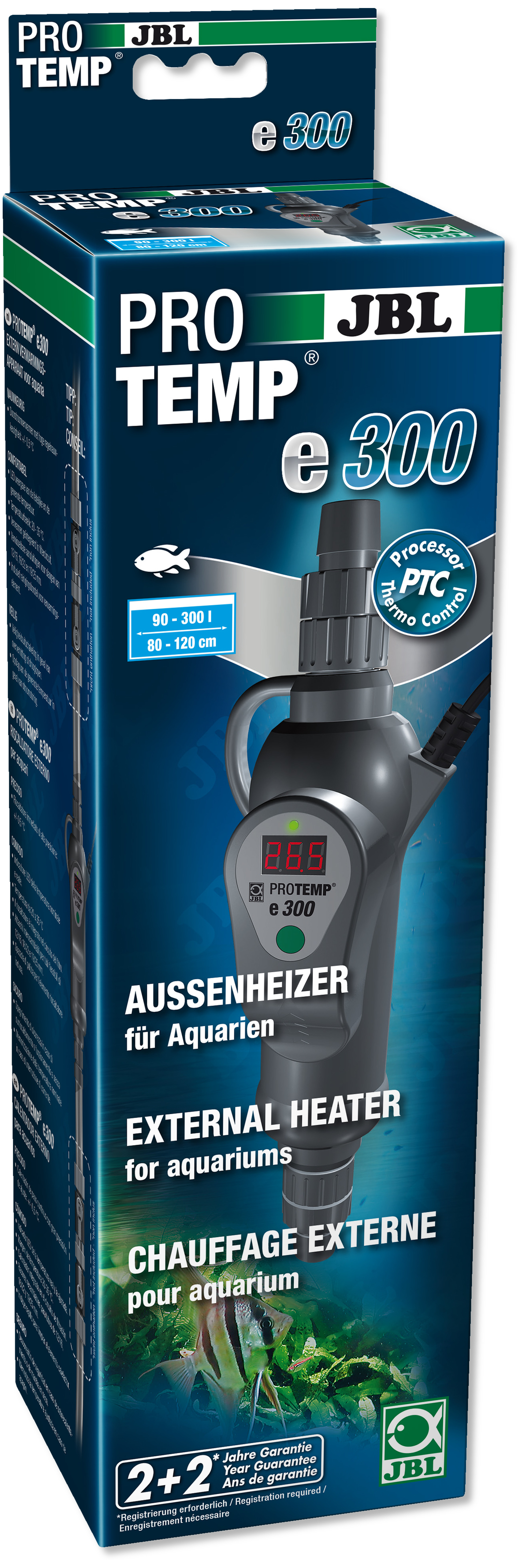 Inline varmelegeme til akvarier op til 300 liter. Jbl Protemp e300 inline varmelegemet leveres med 3 forskellige slangestudser,12/16-16/22-19/25mm samt en rensebørste.